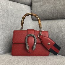 Gucci女包价格 古驰红色荔枝纹最新系列迷你竹节包手提单肩女包20.5CM
