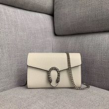Gucci包包批发 古驰476432经典女包进口荔枝纹牛皮迷你酒神包16.5CM 白色