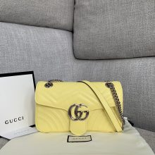 Gucci包包官网 古驰新色香蕉黄原厂牛皮波浪纹Marmont链条包单肩女包22CM