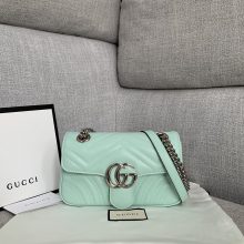 厂家直销 Gucci古驰2020新色薄荷绿进口牛皮Marmont链条女包22CM