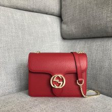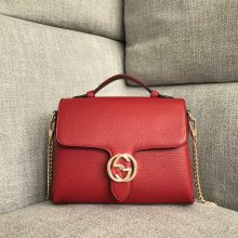 Gucci爆款女包 古驰双G系列荔枝纹牛皮手提包链条斜挎包25CM 红色