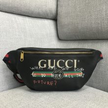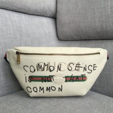 厂家直销 Gucci古驰时尚涂鸦款白色牛皮腰包胸包男女通用28CM
