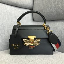 高档女包批发 Gucci古驰大蜜蜂装饰玛格丽特皇后手提包25.5CM 黑色