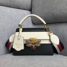 古奇包包批发 Gucci经典款玛格丽特皇后蜜蜂手提女包25.5CM 黑拼白色