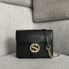 广州白云皮具城 Gucci古驰新款黑色荔枝纹牛皮链条包手提女包25CM