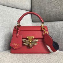 淘宝热销女包 Gucci古驰红色平纹牛皮大蜜蜂玛格丽特皇后手提包25.5CM