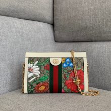 Gucci包包官网 古奇新款秋冬花卉图案Ophidia链条单肩女包26CM 白色