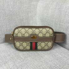 Gucci新款女包 古驰517076经典双G面料红绿织带正方形腰包18.5CM