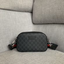 厂家直销 Gucci古奇灰色压花相机包男女通用单肩斜挎包24CM 黑色