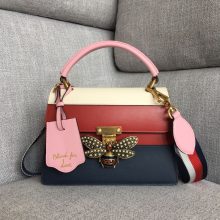厂家直销 Gucci古驰白拼红拼蓝平纹大蜜蜂玛格丽特皇后手提包25.5CM