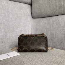 【P1280】Celine包包批发 思琳老花料棕色立体凯旋门皮扣链条单肩包