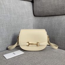 Celine包包批发 思琳191363米黄色原厂牛皮新款斜挎马鞍包单肩包17CM