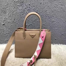 Prada普拉达 官网同款 paradigme sffiano拼小牛皮手袋 粉色拼色肩带