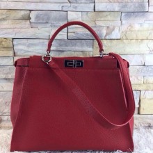 广州白云皮具城 顶级原版TOGO皮 FENDI单肩包小猫包 深红色
