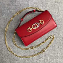 古驰包包批发 Gucci走秀款564718简约平纹链条手包19CM 红色