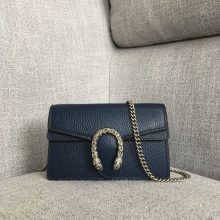 古奇酒神包价格 Gucci蓝色荔枝纹牛皮斜挎包包链条小包16.5CM