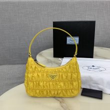 普拉达包包批发 Prada2020年新款hobo腋下包褶皱尼龙单肩手提女包22CM 黄色