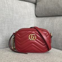 古驰热销女包 Gucci Marmont绗缝相机包V纹斜挎小包18CM 红色