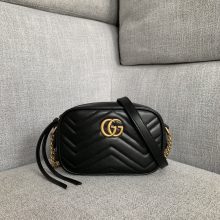 Gucci经典款女包 古驰V型绗缝小牛皮相机包单肩斜挎包18CM 黑色