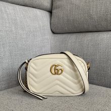 古奇女包批发 Gucci奶茶色V纹小牛皮Marmont相机包斜挎包18CM