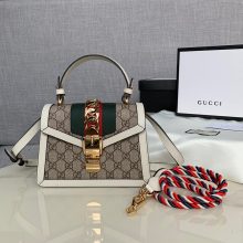Gucci包包官网 古驰Sylvie老花系列网红包织带手提斜挎女包小号20CM 白色