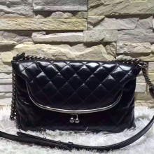 Chanel香奈儿 复古英伦风 黑色菱格单肩包 油蜡皮经典女包 大号32cm