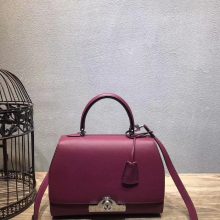 Prada包包批发 普拉达76651灰色十字纹牛皮水桶包中号23CM手提女包