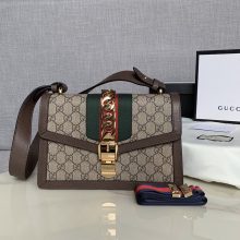 Gucci包包价格 古奇421882多肩带Sylvie老花系列单肩女包中号25CM 啡色